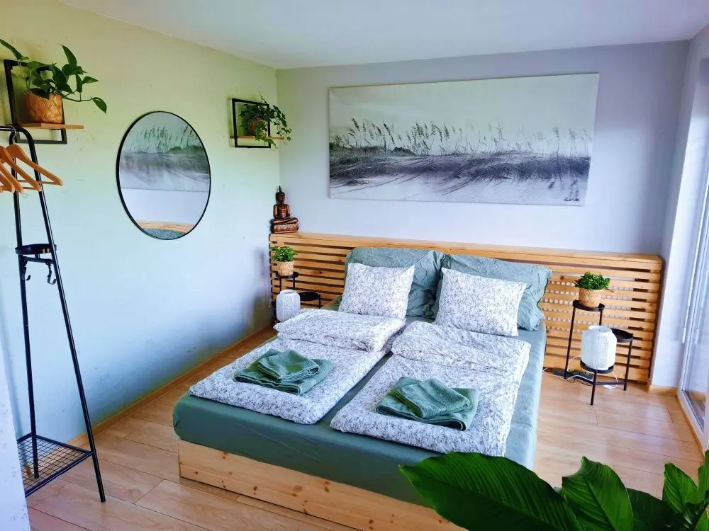 Ložnice: klidná s manželskou postelí pro nerušený spánek.