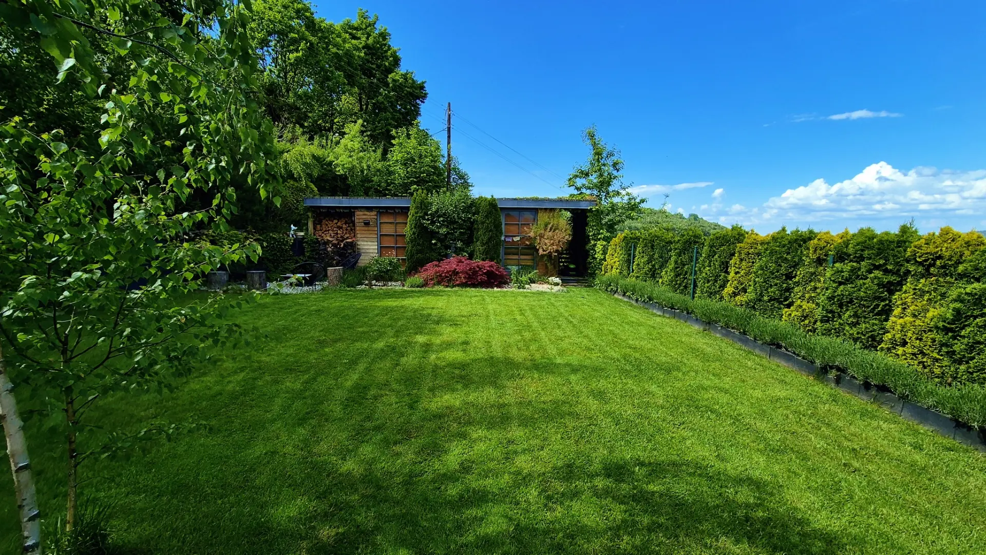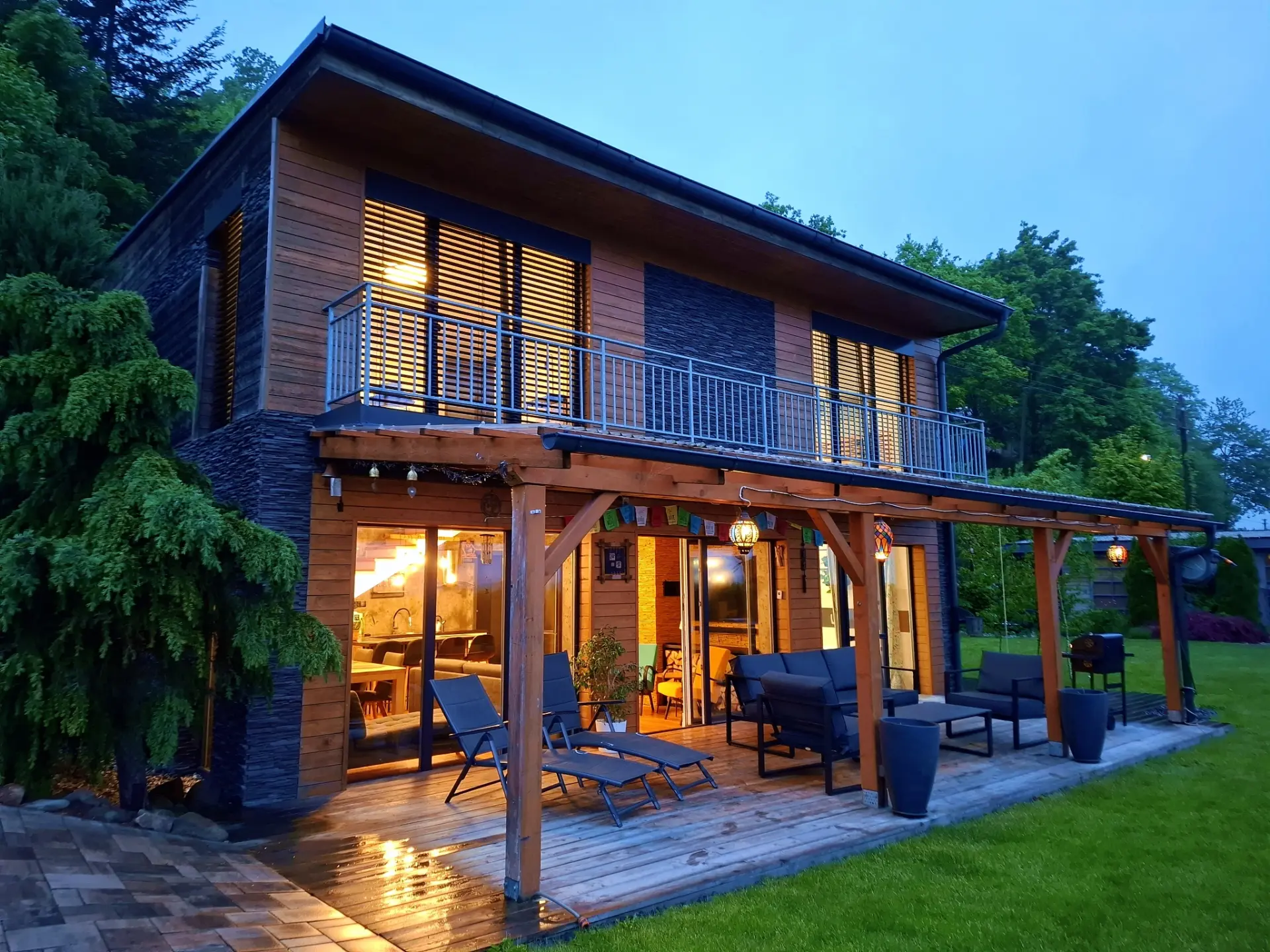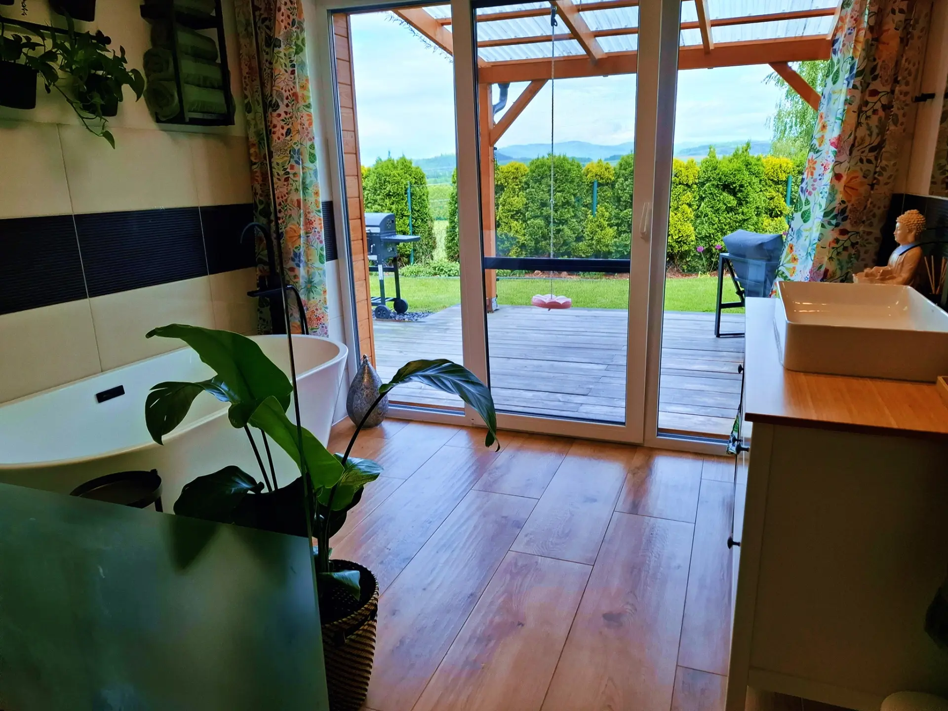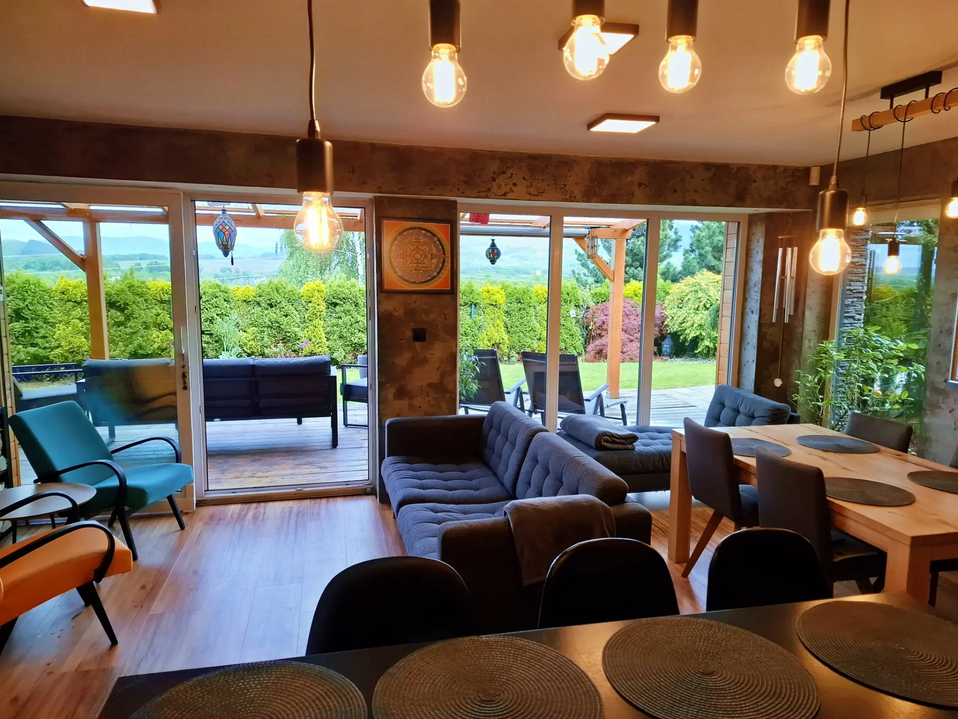 Dům je navržen tak, aby vás propojil s přírodou. Díky proskleným stěnám v obývacím pokoji i ložnici máte panorama Beskyd a dominantní Lysou horu jako na dlani přímo z postele nebo od venkovního posezení.