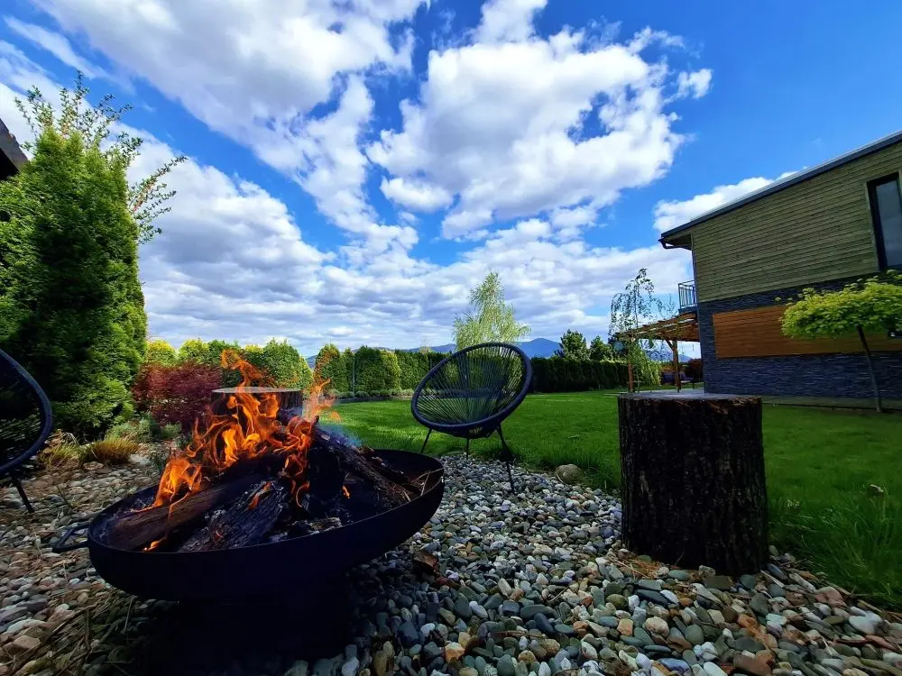 Ohniště s připraveným dřevem: Oheň spojuje a věříme, že u něj vznikají ty nejhezčí vzpomínky. V dřevníku na vás čeká nachystané dřevo i sekyrka. K dispozici jsou také tyče na opékání špekáčků.